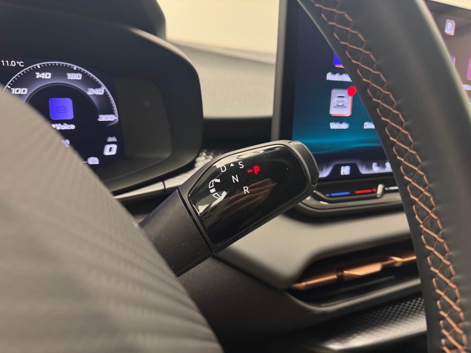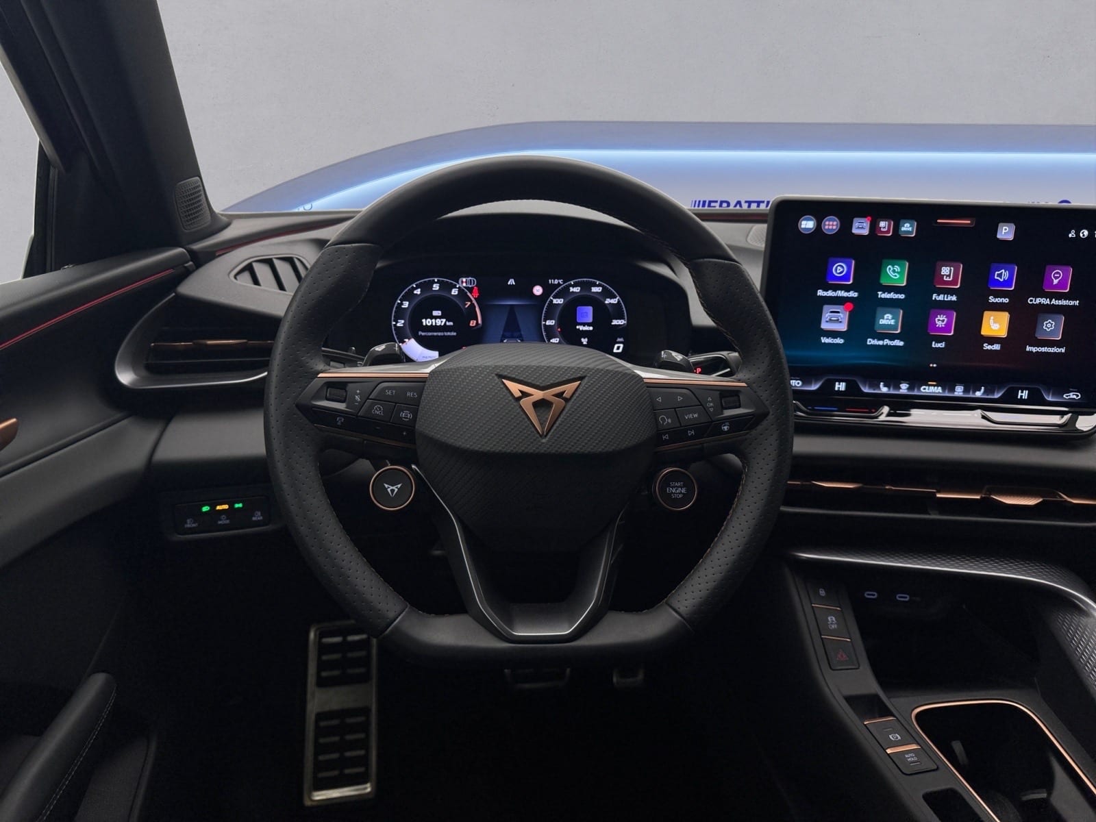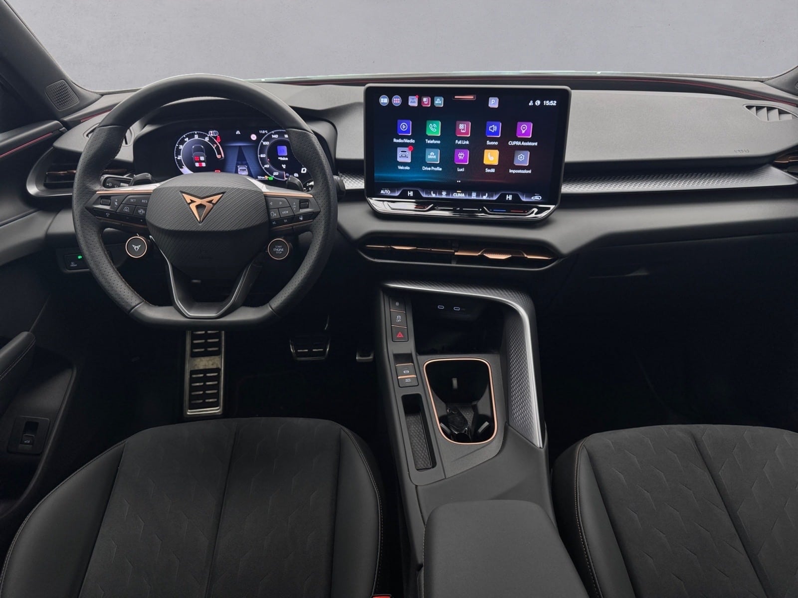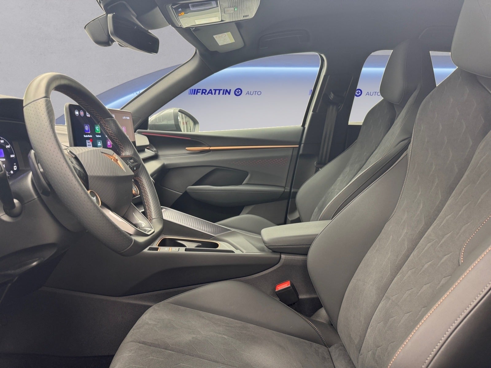 Sedili anteriori avvolgenti in Dinamica® Black Soul con dettagli in similpelle e cuciture Copper
