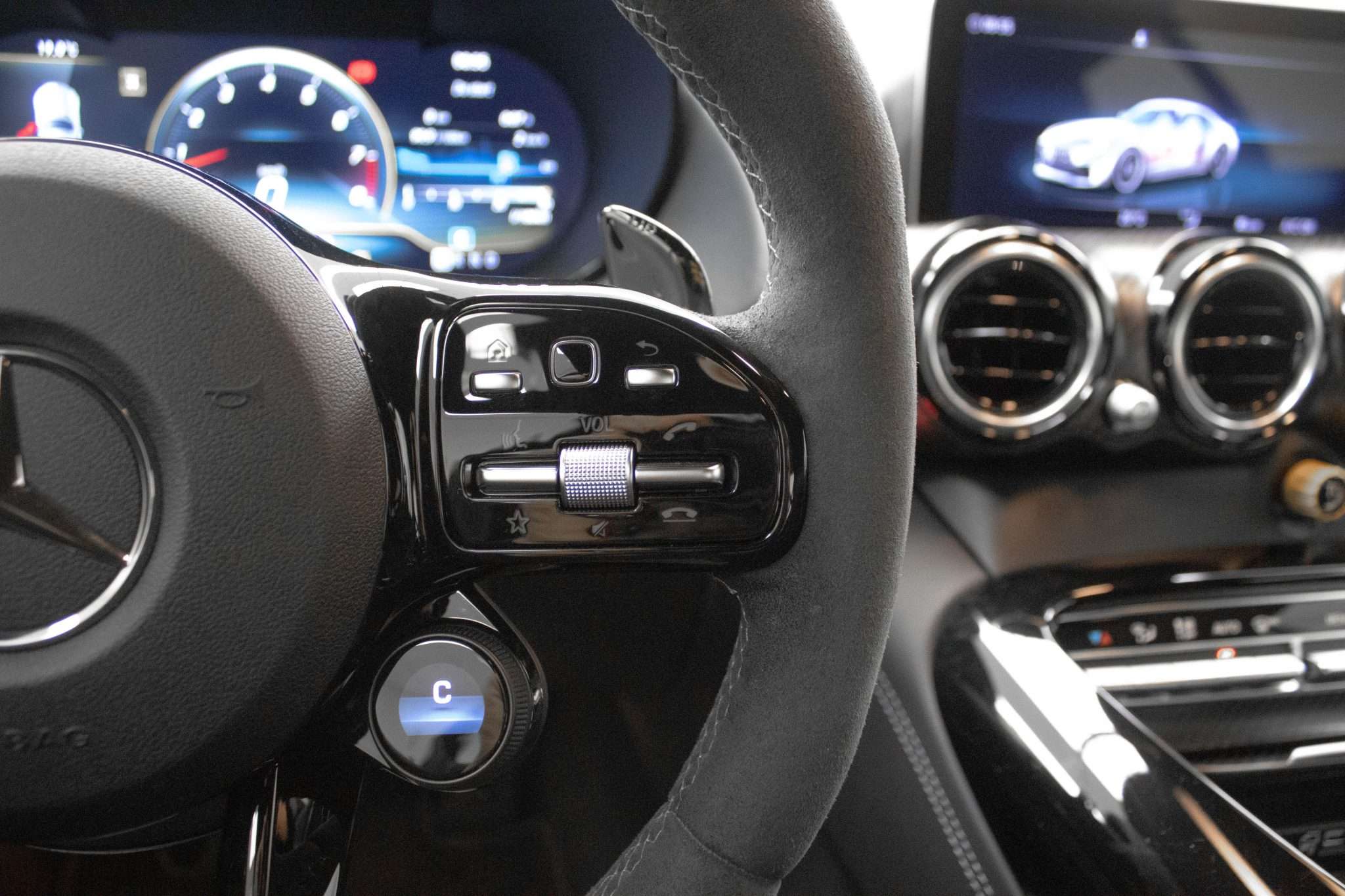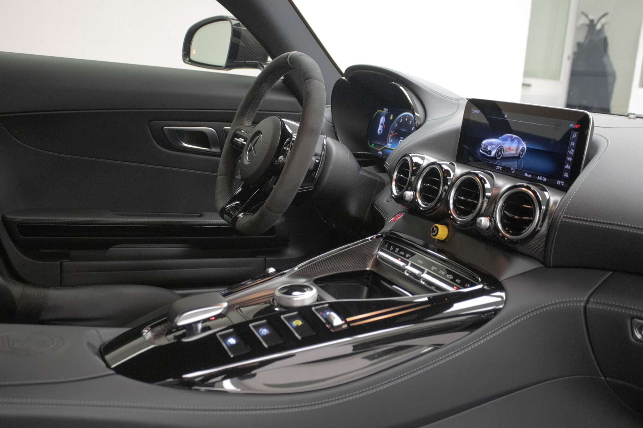 L'abitacolo della Mercedes Benz AMG GT R Pro è un autentico rifugio, dove tecnologia e comfort si fondono alla perfezione. Ogni viaggio diventa un’occasione per godere della qualità e della cura costruttiva. Dotata di accessori come il sistema di infotainment con schermo multifunzione interamente digitale, questa vettura ti consente di rimanere sempre connesso tramite Apple CarPlay e Android Auto, perfezionando la tua esperienza di guida.