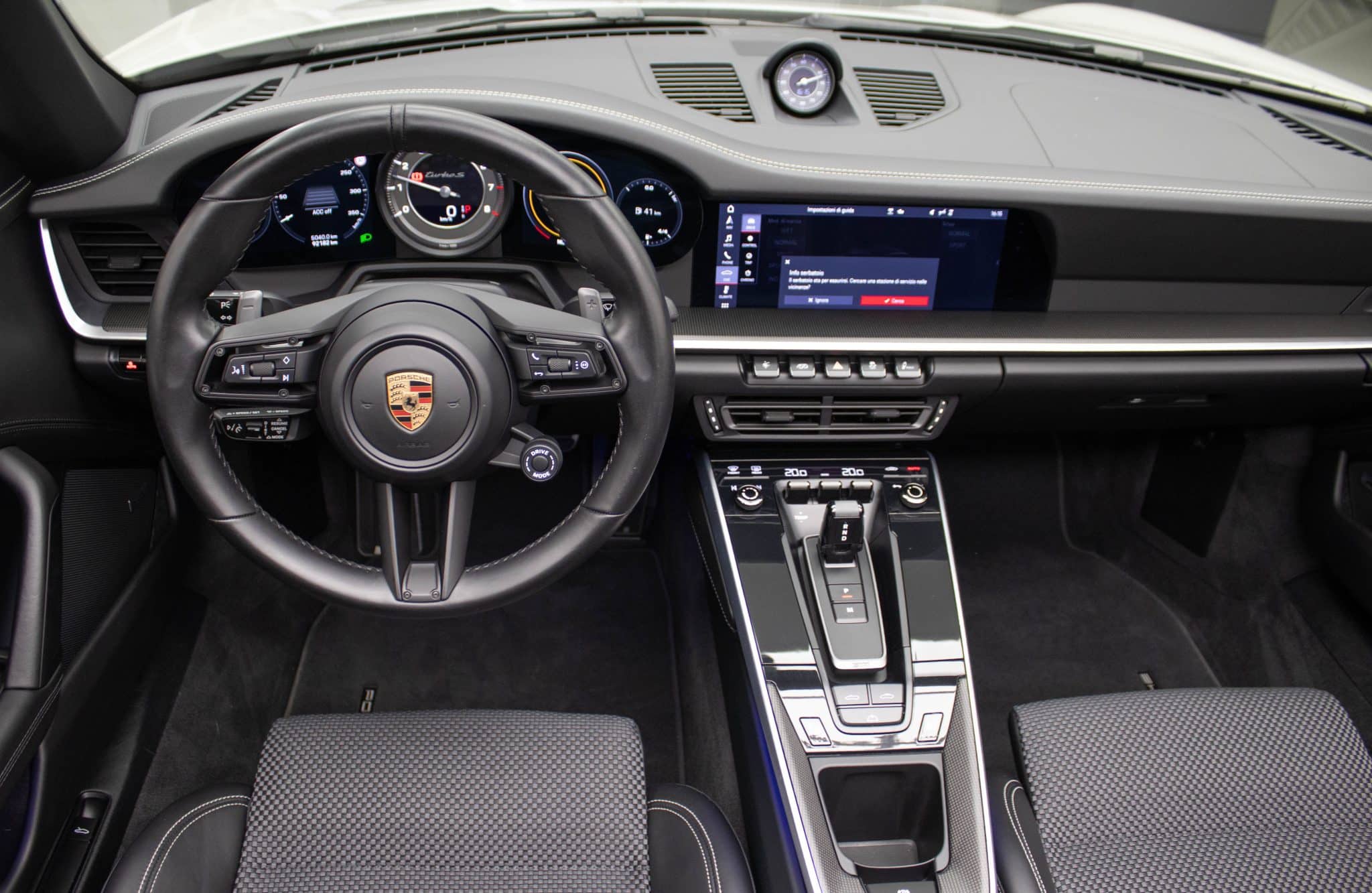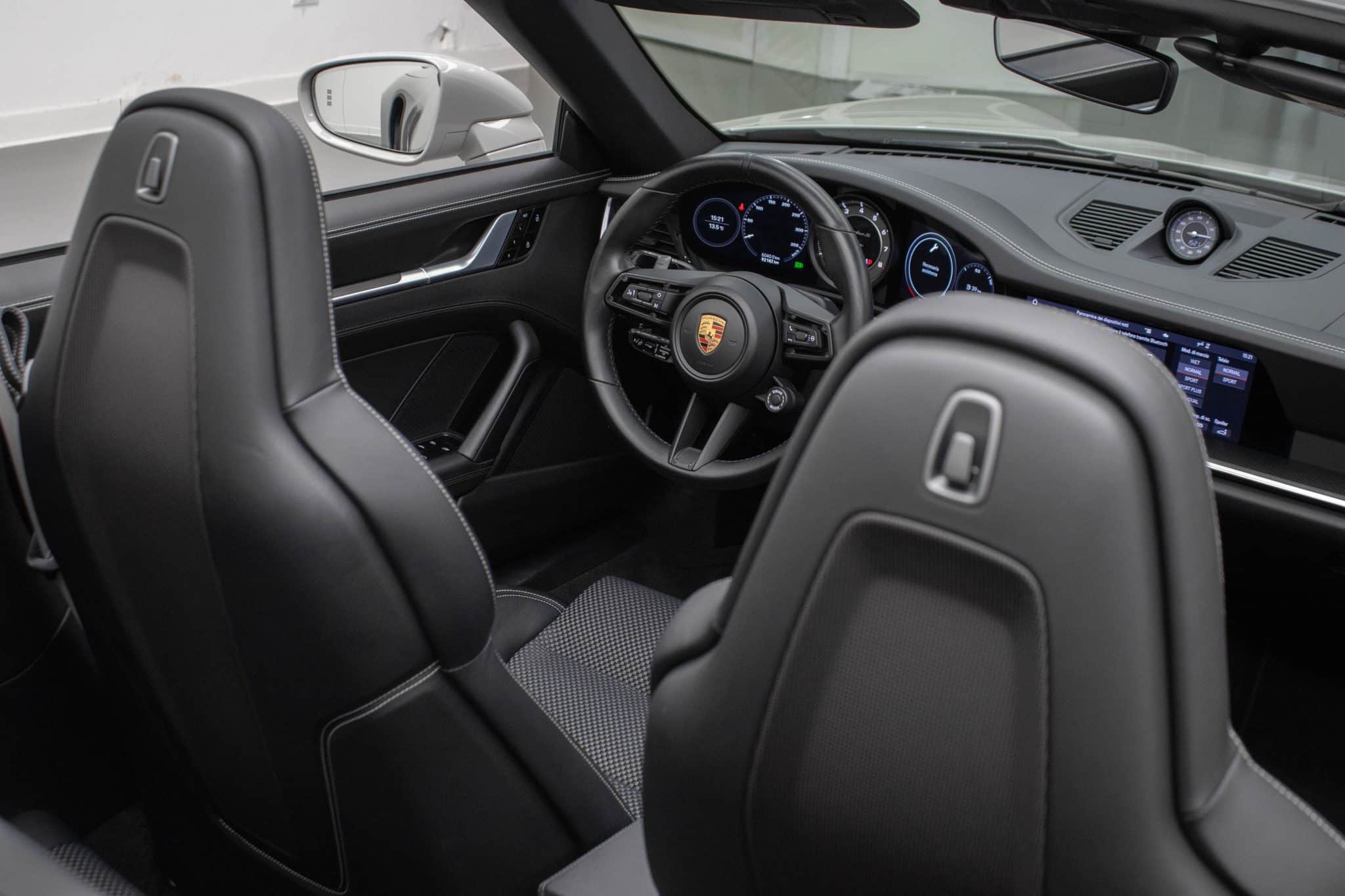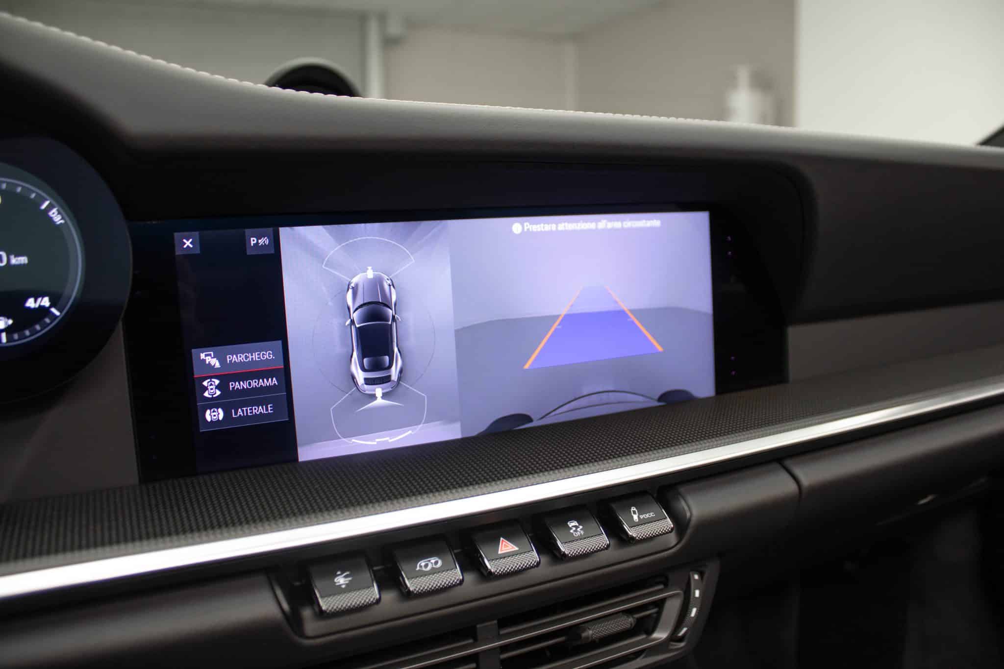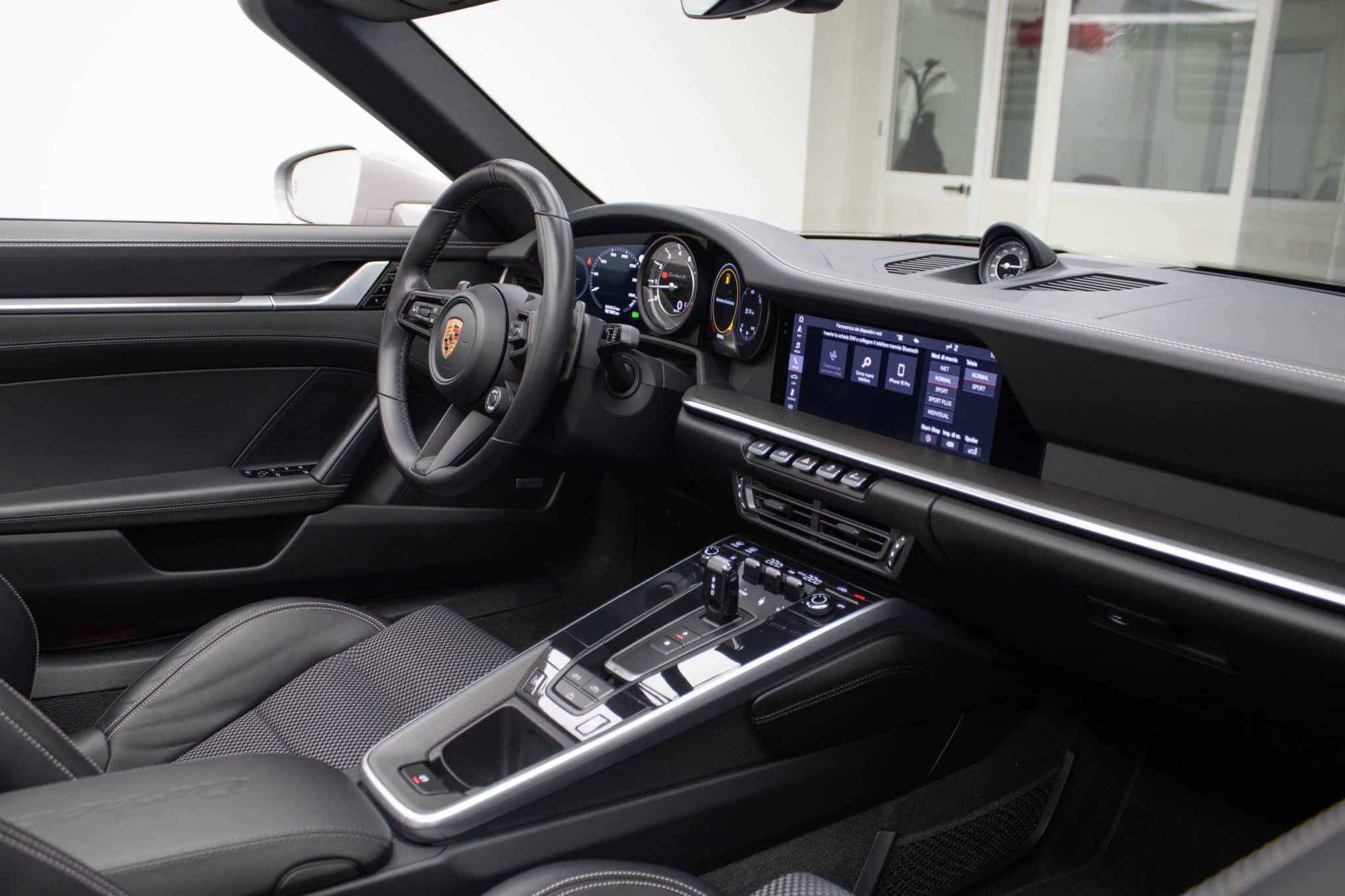 L'abitacolo della Porsche 911 Turbo S è un vero rifugio di lusso e innovazione. Gli interni in pelle grigio scuro, uniti a sedili sportivi riscaldabili, infondono un senso di esclusività e comfort senza pari. La tecnologia moderna è all'avanguardia, con un sistema di infotainment completo che include Bluetooth, un touchscreen intuitivo e compatibilità con Android Auto e Apple CarPlay. Ogni viaggio diventa così l'occasione per restare sempre connessi.