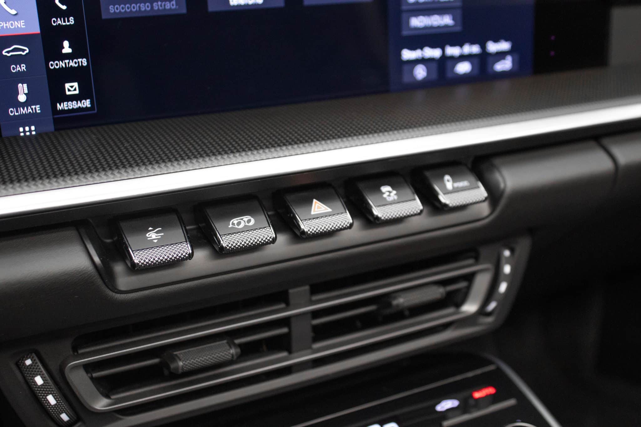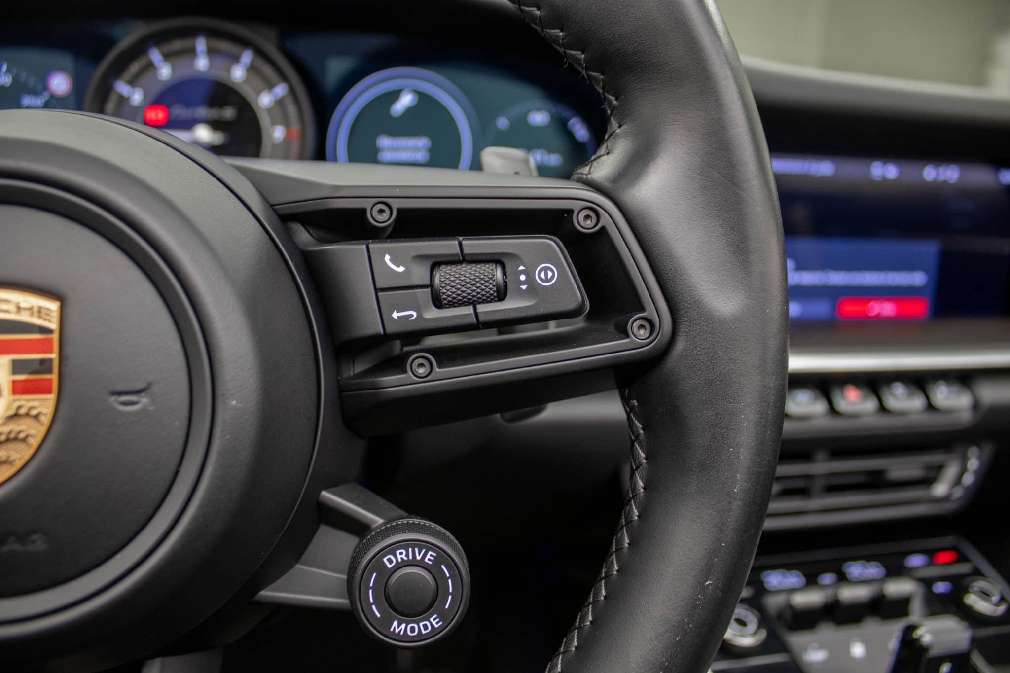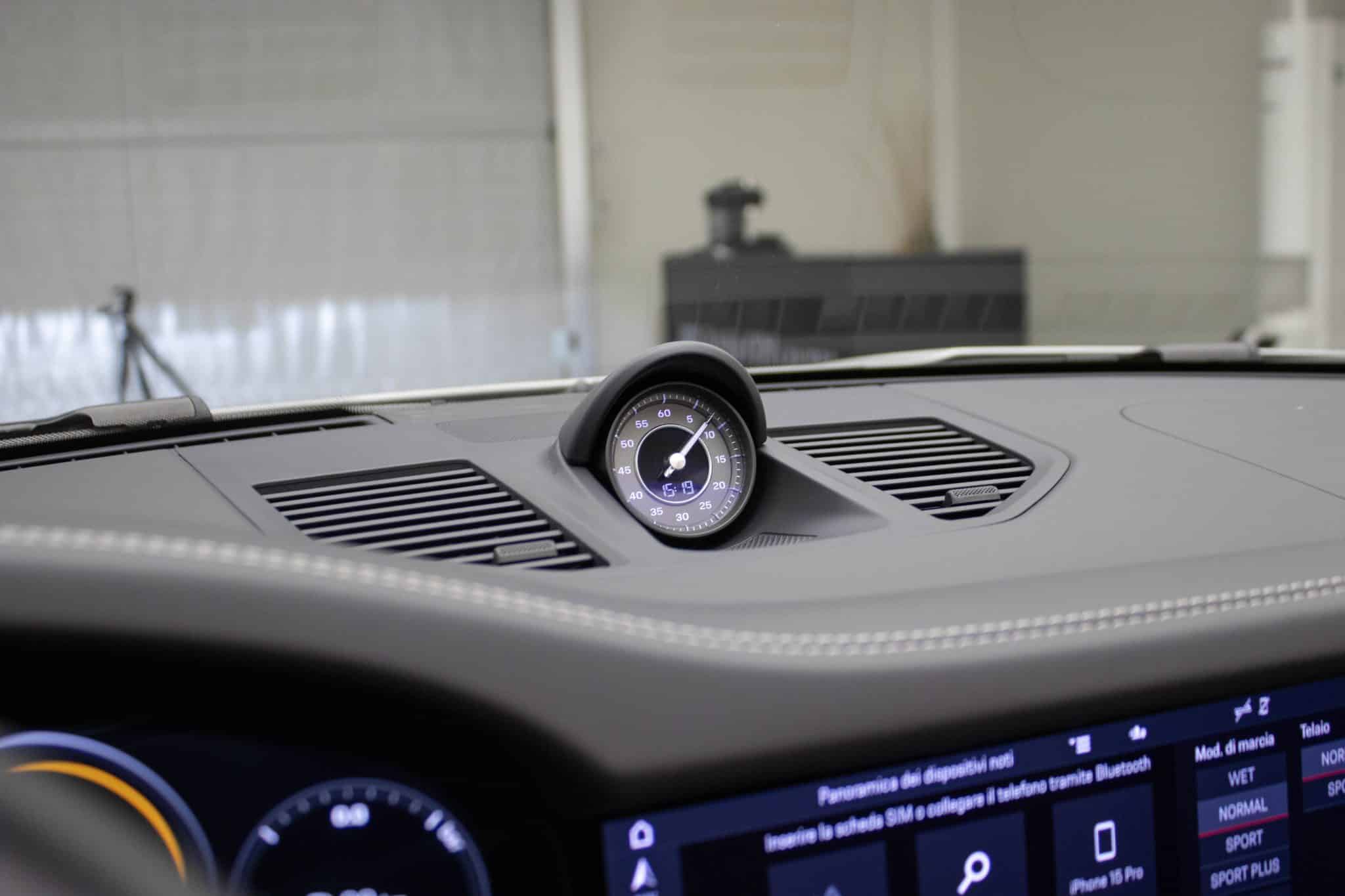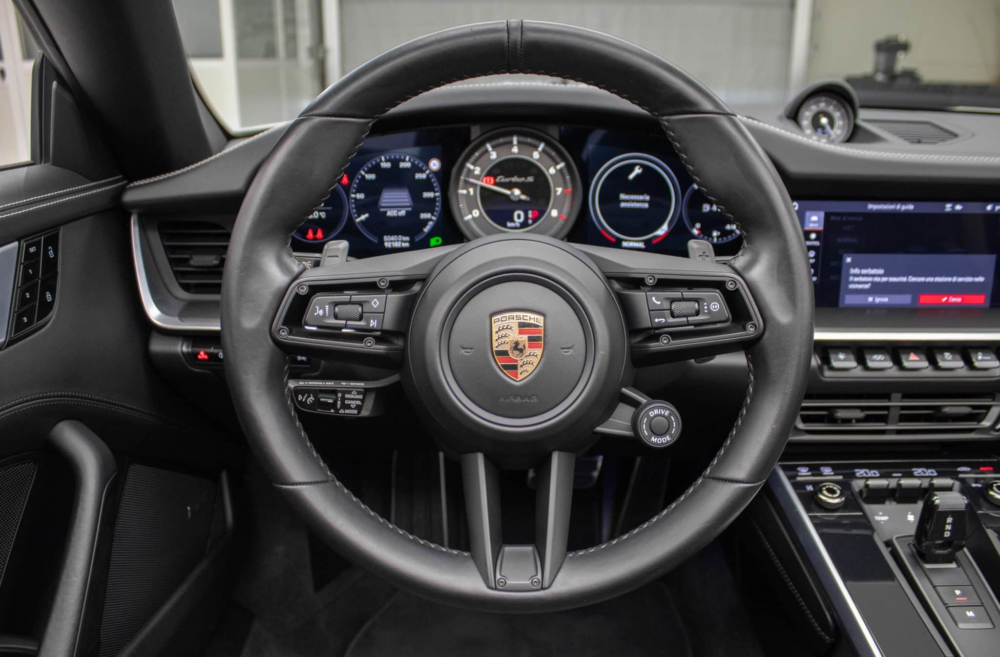 L'abitacolo della Porsche 911 Turbo S è un vero rifugio di lusso e innovazione. Gli interni in pelle grigio scuro, uniti a sedili sportivi riscaldabili, infondono un senso di esclusività e comfort senza pari. La tecnologia moderna è all'avanguardia, con un sistema di infotainment completo che include Bluetooth, un touchscreen intuitivo e compatibilità con Android Auto e Apple CarPlay. Ogni viaggio diventa così l'occasione per restare sempre connessi.